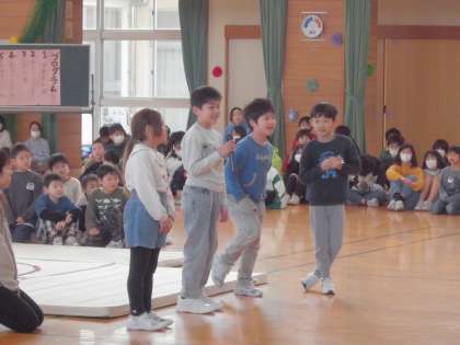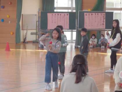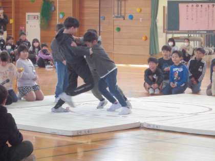 2年生はけん玉と相撲を6年生と一緒にしました。