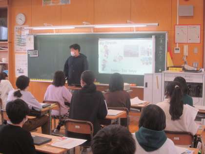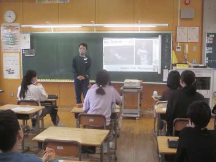 完成したスライドを使って、将来の夢についてスピーチをしました。
