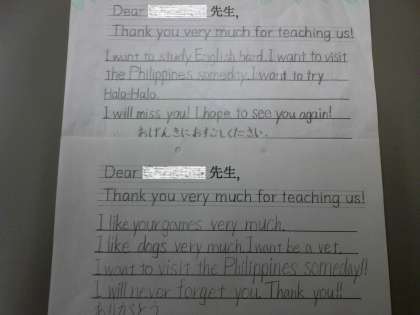 一人ずつ心を込めて書いたALTへのThank You Letter。