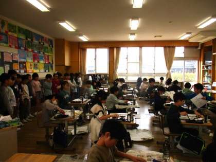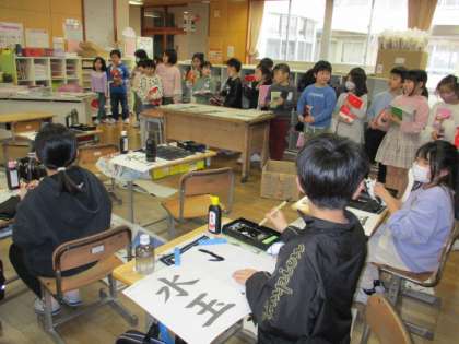 もうすぐ2年生も終わります。3年生になったら、書写の時間には毛筆の学習をします。2年生は、3年生の学習の様子を見学させてもらいました。新しい学習に興味津々でした。