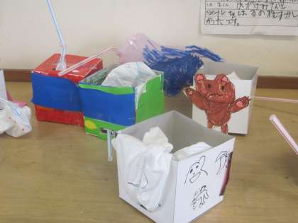 ストローを動かすとキャラクターが飛び出す工作遊びです。