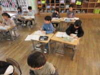 ハンカチ、ティッシュ、はみがみ、歯ブラシセット」を持ってきたかチェックします。