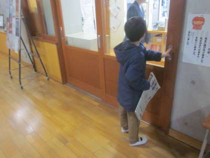 コミュニケーション力を高めるために職員室に新聞をもらいに行きました。