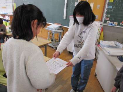 図書委員会では、1年間に図書室でたくさん本を借りた人を表彰しました。