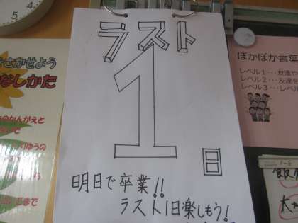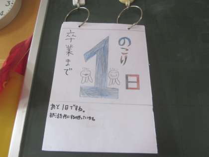 残り1日(卒業式除く)です。