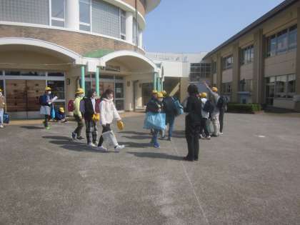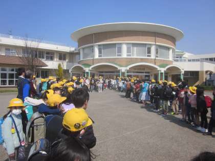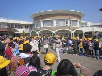 卒業式の日は家庭でお祝いをする1〜3年生が6年生を見送りました。