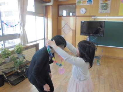 一年間一緒に勉強した先生に感謝のメダルを渡しました。