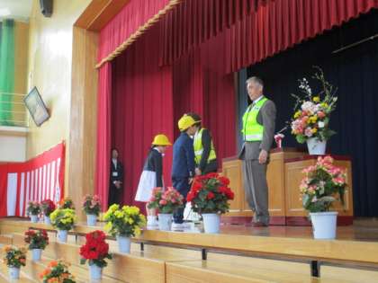 安全帽子をいただきました。安全に気を付けて登下校しましょう。