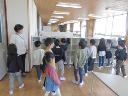 元気いっぱいに登校した後は、ロッカーの場所や置き方、持ち物の名前を確認しました。