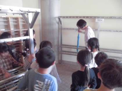 今日の最後の学習は、帰りの用意をしたり、玄関の傘立て・カッパかけの場所と置き方を確認したりしました。