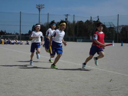 学年でリレーをしました。自分たちで作戦を立て、全力で走りました。
