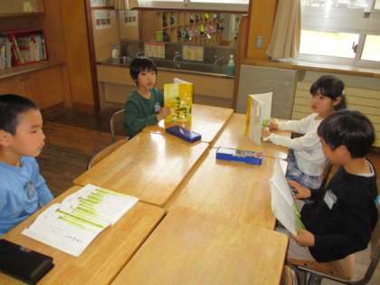 国語科では「ふきのとう」の学習をしています。音読発表会に向けて役割を決め、グループで練習しています。役になりきってセリフを言ったり、声の大きさやスピードに気を付けたりと、工夫して読んでいる姿が見られます。