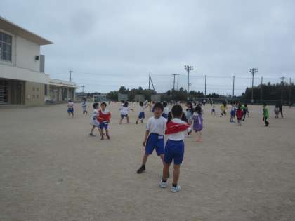 今日から、低学年が鬼ごっこの活動となりました。鬼に捕まらないようにすばやく動いていました。