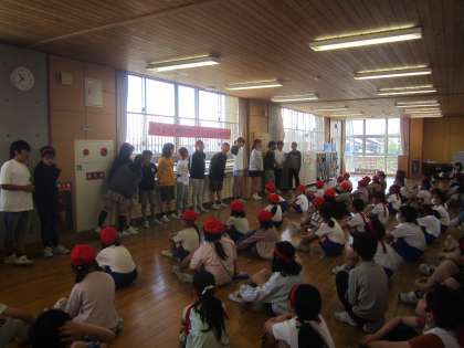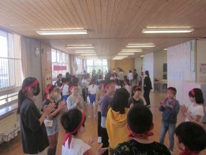 運動会に向けて結団式を行いました。どの団も、6年生を中心に目当てを確認し、応援練習をしました。