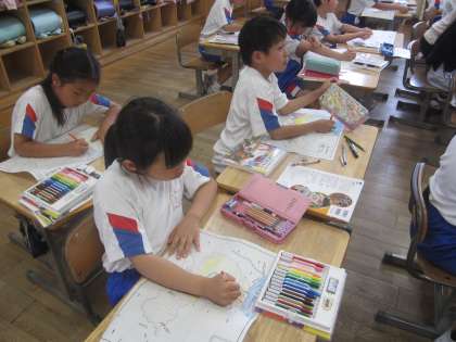 白地図に書き込みながら、川の名前や新幹線の通っているところなどを確かめました。