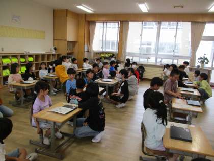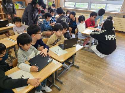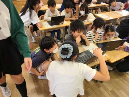 初めてクロムブックを使いました。今日は、使い方を6年生さんに教えてもらいました。だんだんと自分でできるようにがんばります。