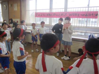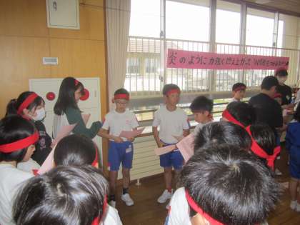団ごとに応援練習を行いました。応援歌やエール等、4団に分かれて練習しました。