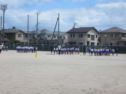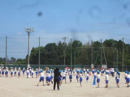 グラウンドでの練習が始まりました。上が低学年、下が中学年の様子です。