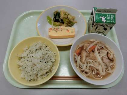 今日はかやくうどんでした。おかわりの列にはたくさんの子供達が並んでくれました。今日もおいしくいただきました。