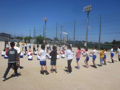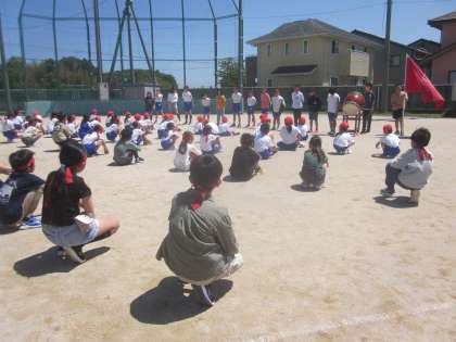 グラウンドでの応援練習。 気合いが入ってきました。 赤団の様子です。
