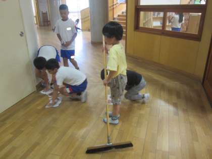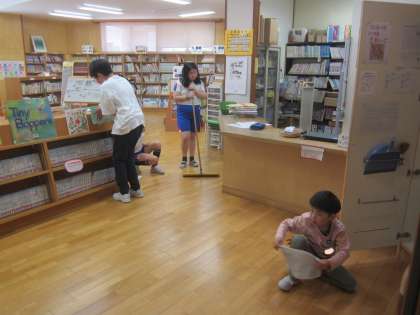 上級生が下級生に優しく声をかけて、協力して清掃に取り組んでいる姿が見られました。