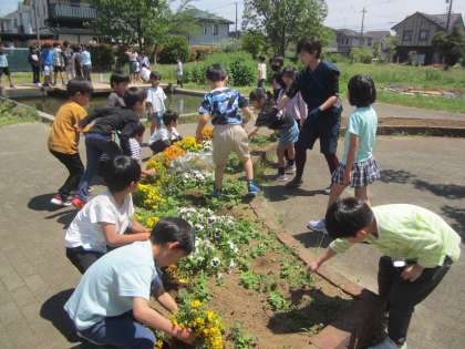 1年生は花壇の整備に取り組んでいました。それを手伝う3年生の姿もありました。
