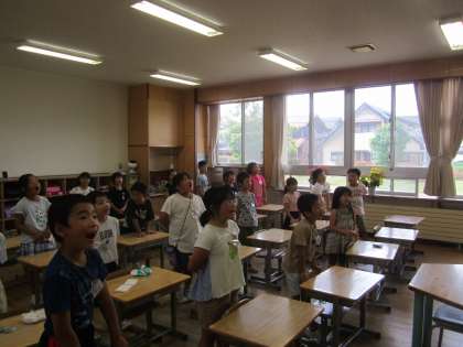 2年生の、朝の歌の様子です。運動会の歌を元気よく歌っていました。写真からも元気な歌声が聞こえてきそうです。