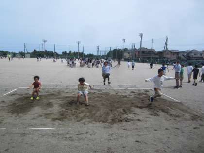 今日から「チャレンジ技7(わざセブン)」の練習に取り組んでいます。50メートル走、ソフトボール投げ、走り幅跳びに分かれて活動しました。