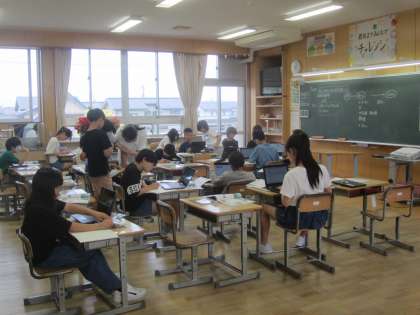 水害からくらしを守る工夫について調べました。調べ方は、自分で決めています。