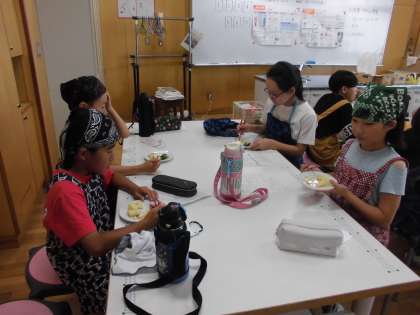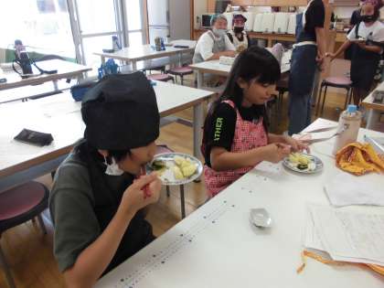 いただきます!自分たちでつくった料理は、やはりおいしいです。