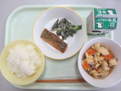 【本日の献立】 ・ごはん ・牛乳 ・魚の竜田揚げ ・よごし ・たまごとじ