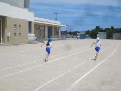 クラスごとに分かれての体育でした。1組は、50メートルの記録を測定しました。
