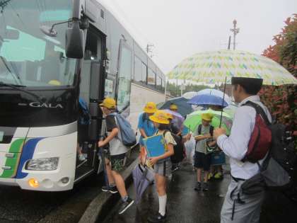あいにくの雨模様ですが、元気に出発しました。