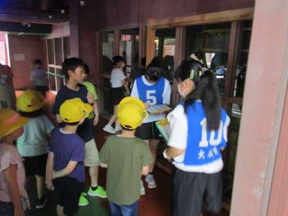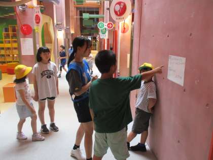 次の活動は、こどもみらい館で、6年生といっしょになぞときラリーをしました。グループごとに館内にあるクイズを解くのが楽しかったです。