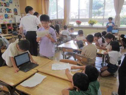 農家で働く人の仕事や工夫について、調べたことを友達に発表しました。