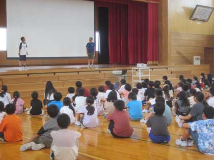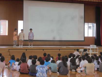 にこにこ班で校内を回り、七夕の短冊を探します。