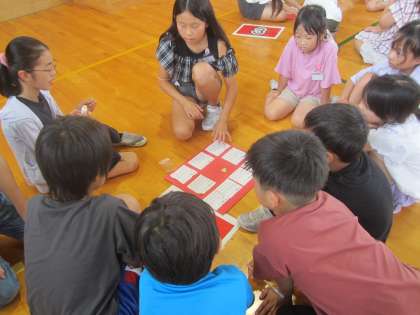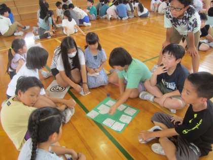 アリーナにもどってから、願い事をグループごとに大きな短冊に貼り合わせました。