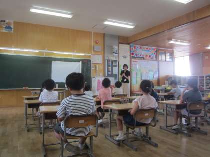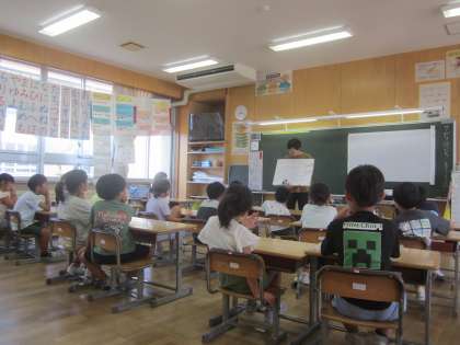 1組では、夏休みの自由研究についてヒントになるお話を聞いていました。