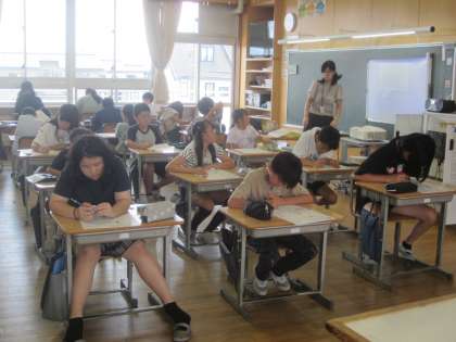 今日は、ヒアリングのテストを行っていました。落ち着いて取り組んでいました。