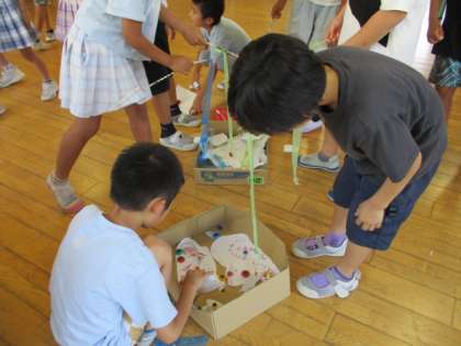 今日は1学期頑張ったご褒美、「お楽しみ会」を開きました。それぞれの係が準備したものをみんなで楽しみました。