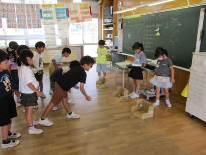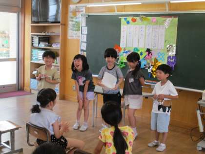 1学期の終わりに 各クラスでお楽しみ集会をしました。係ごとに考えたゲームや遊び、クイズやお笑いなどいろいろな出し物をして楽しみました。
