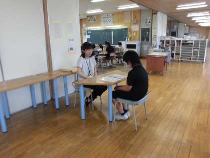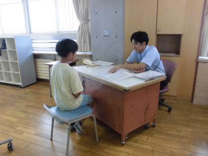 先生が一人ずつあゆみを手渡ししながら、子供たちと一学期を振り返りました。