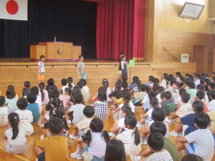 児童代表が、1学期に努力したことや夏休み・2学期への意気込みを発表しました。