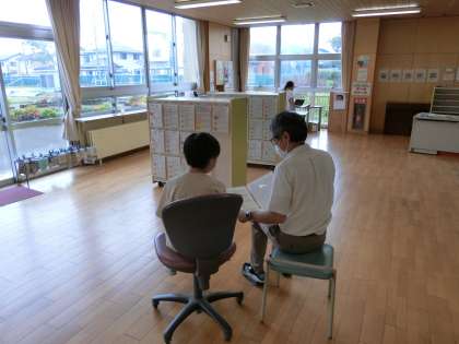 ドキドキしながら、あゆみをもらっている子供たちです。2学期に向けて、やる気を燃やしています。
