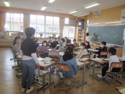 4年生の学習の様子です。友達の考えを聴いて学ぶ活動を大切にしています。
