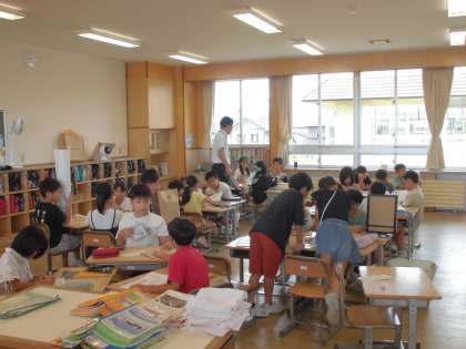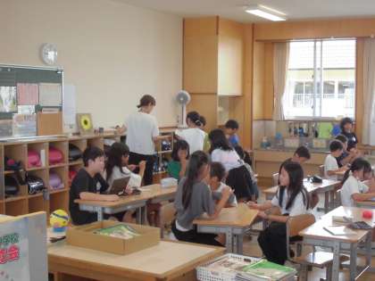 夏休みの頑張りや作品を紹介し合ったり、教室に掲示するための準備をしたりしていました。
