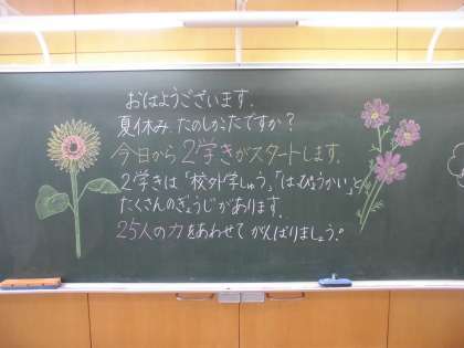 始業式の朝、先生たちからのメッセージが子供たちをお出迎えしました。