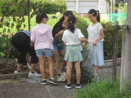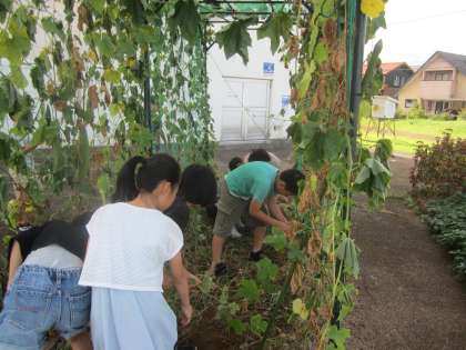4年生の子供たちが、ヘチマの手入れをしていました。気持ちのよい働きぶりでした。
