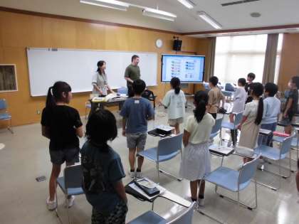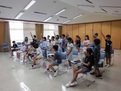 2学期最初の外国語活動です。クロスファイヤーゲームで1学期のおさらいをしました。