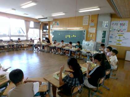 2学期最初の給食は、子供たちからの提案で、円になって食べました。